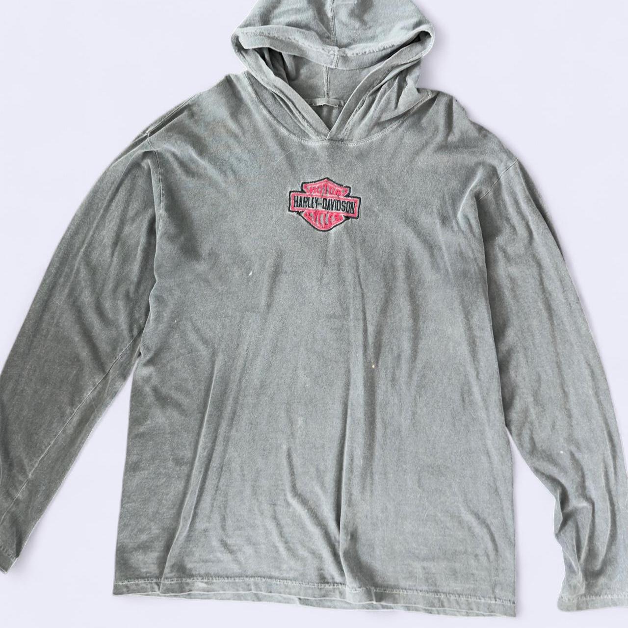 هودي خفيف الوزن بتصميم كلاسيكي من هارلي-ديفيدسون، بلون رمادي باهت، مزين بشعار هارلي الشهير المطرز على الصدر. يتميز بقصة مريحة تمنحه مظهراً عتيقاً أنيقاً. قطعة أساسية لعشاق الدراجات النارية، ومحبي أزياء الشارع، وهواة جمع القطع الكلاسيكية.