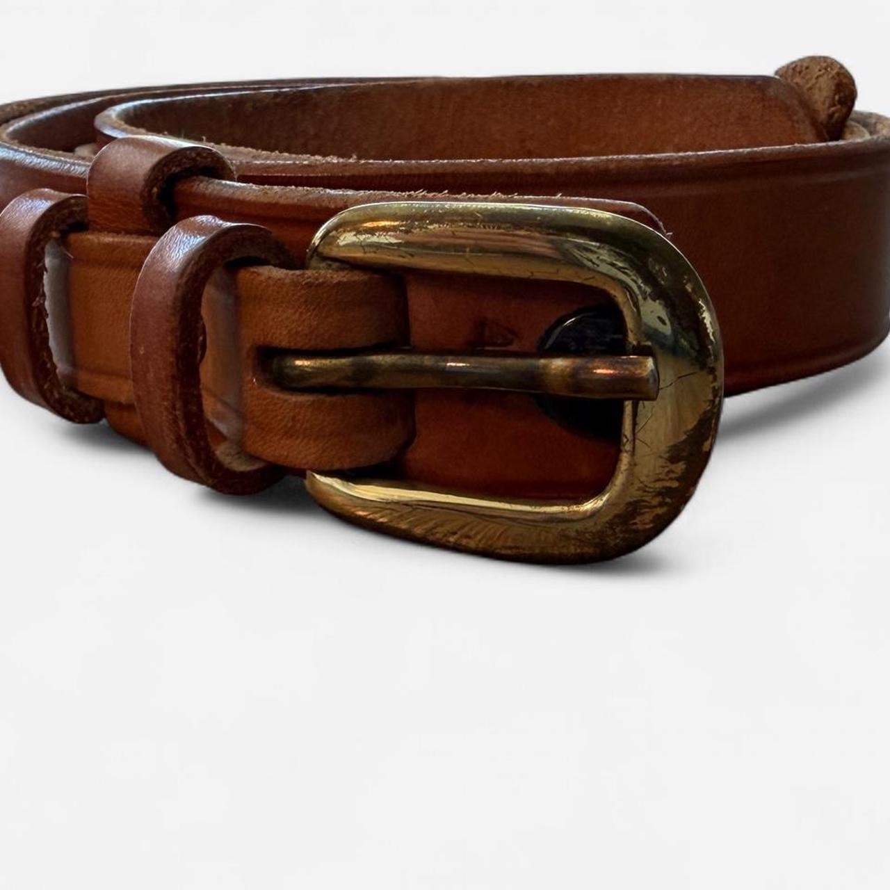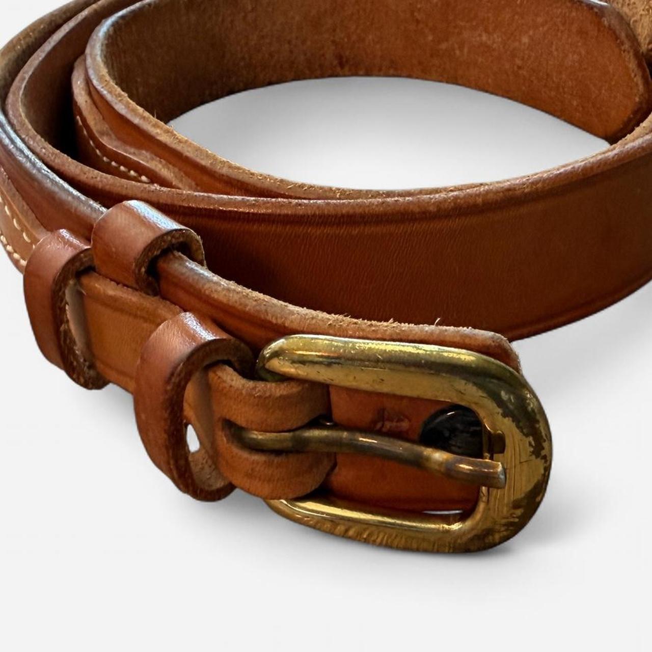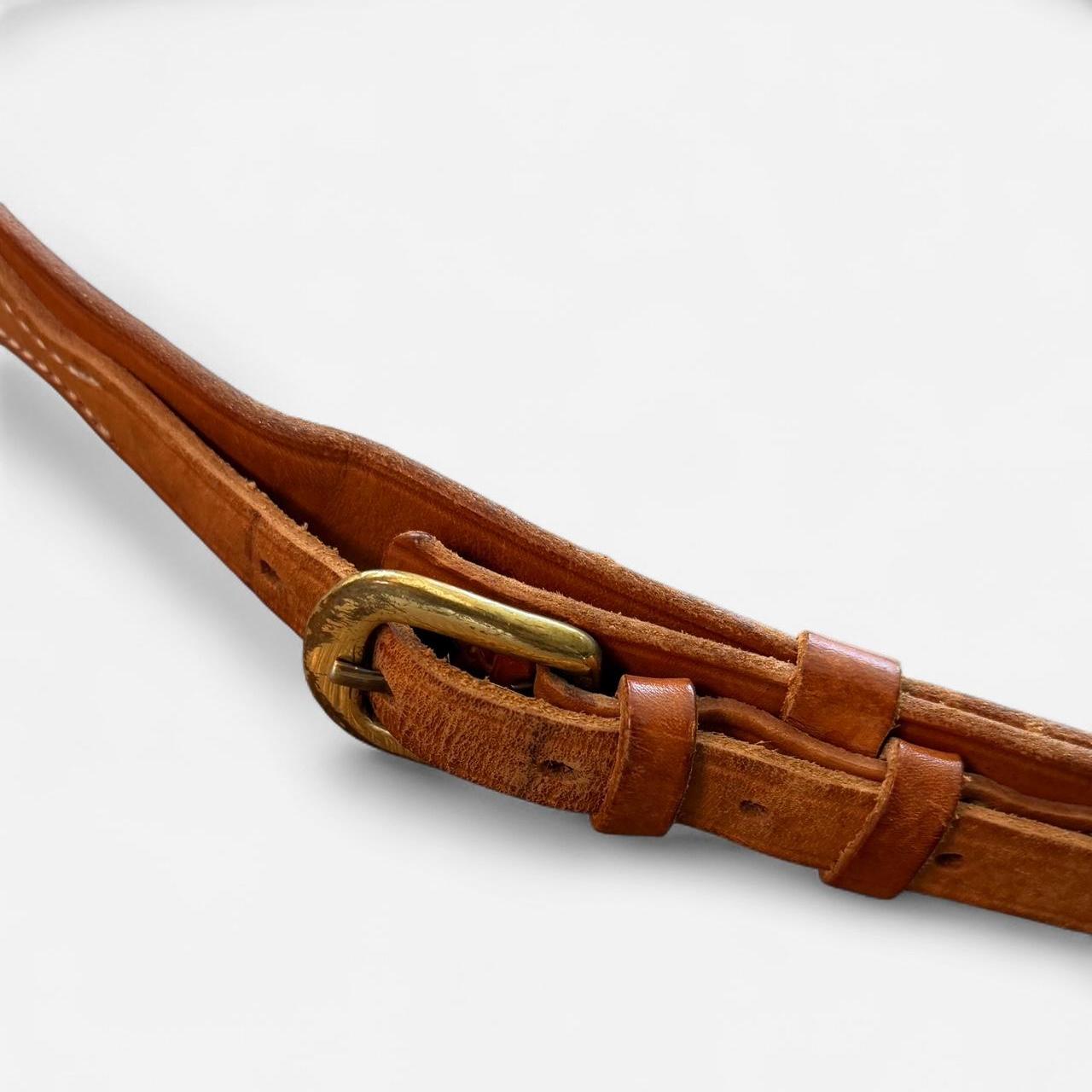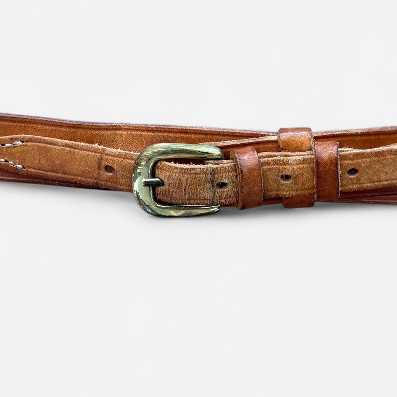 حزام جلدي عتيق بلون بني فاتح مع مشبك نحاسي