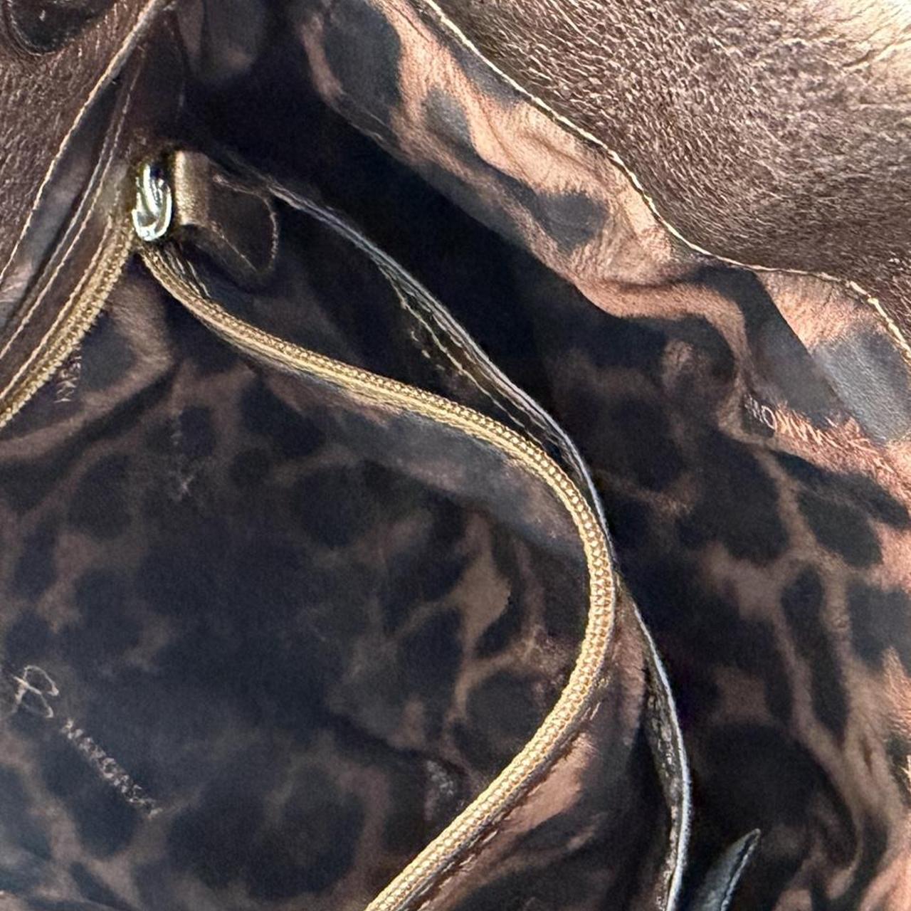 حقيبة كتف أنيقة من الجلد الطبيعي من تصميم بي. ماكوفسكي، بلون برونزي معدني. تتميز بتصميمها الأنيق مع سحّابين أماميين، وتفاصيل فضية كبيرة الحجم، وجسم ناعم مطوي. أما من الداخل، فتتميز ببطانة بنقشة جلد النمر مع جيوب متعددة لتنظيم أغراضك بسهولة - مزيج مثالي بين الفخامة والجرأة.