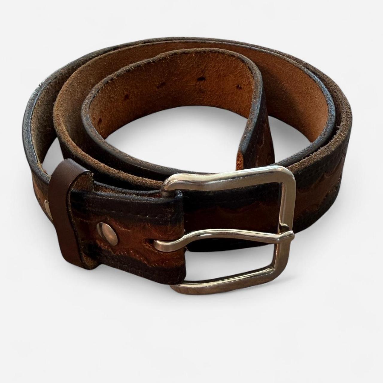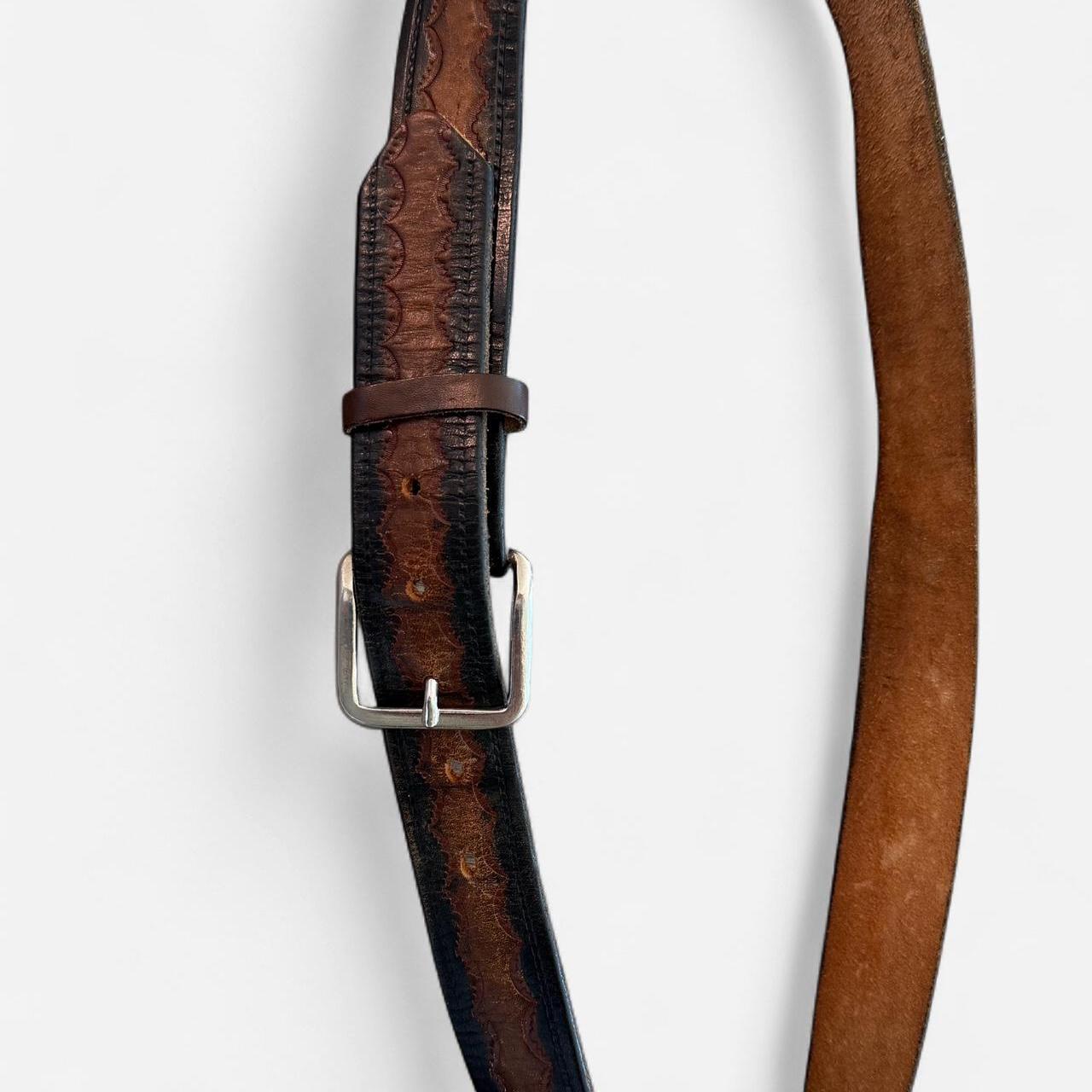 حزام جلدي عتيق منقوش - متدرج اللون البني والأسود