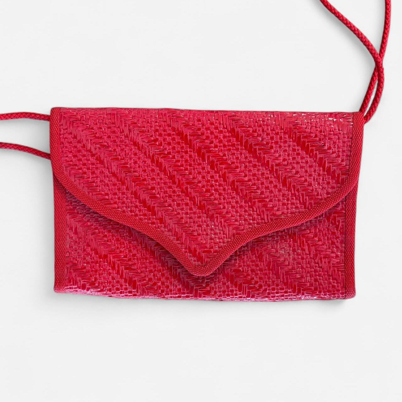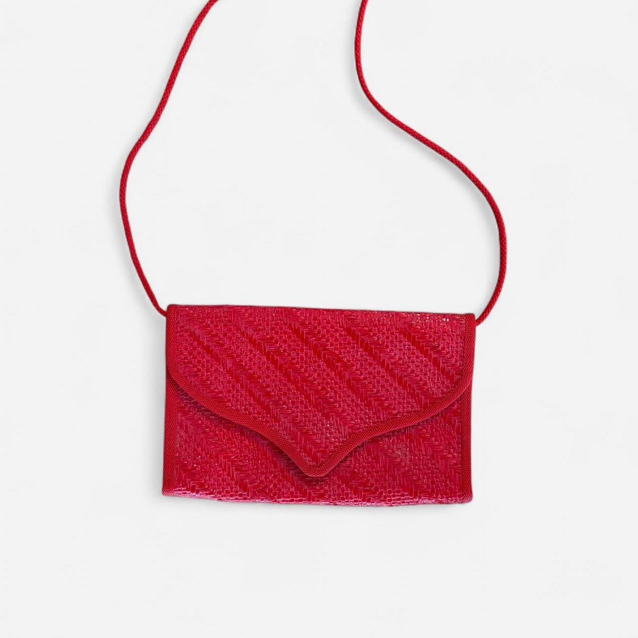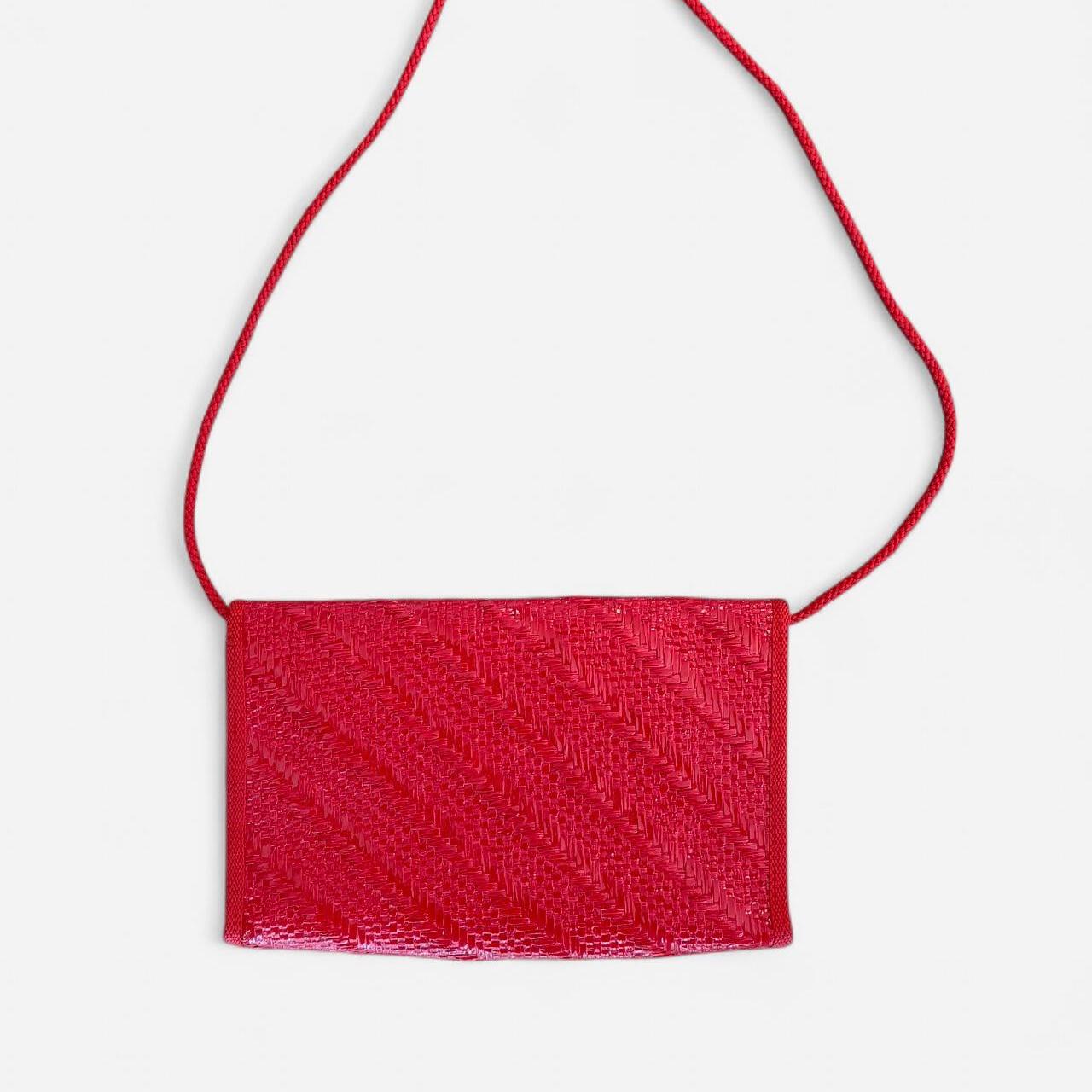 حقيبة يد أنيقة بتصميم كلاسيكي باللون الأحمر من تصميم إيني إيني نوفيللي من فلورنسا، إيطاليا. تتميز هذه القطعة الرائعة بسطح خارجي منسوج ذي ملمس مميز، وغطاء منحني، وحزام رفيع من الحبل لحملها على الكتف أو بشكل متقاطع. صُنعت في إيطاليا بحرفية كلاسيكية ولمسة جريئة مستوحاة من موضة السبعينيات.