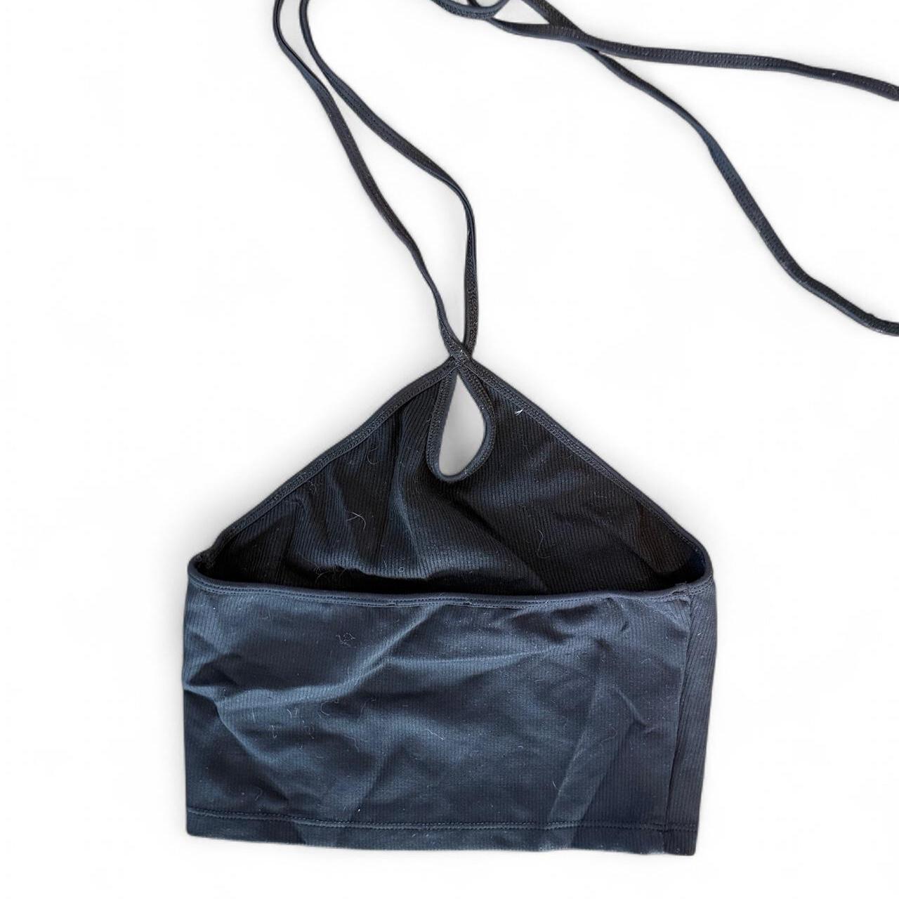 بلوزة قصيرة أنيقة وعملية من زارا، بتصميم هالتر أسود. تتميز بنسيج مضلع ناعم، وأشرطة هالتر قابلة للتعديل، وقصة قصيرة جذابة. مثالية للارتداء فوق طبقات أخرى أو بمفردها في سهرة مميزة.