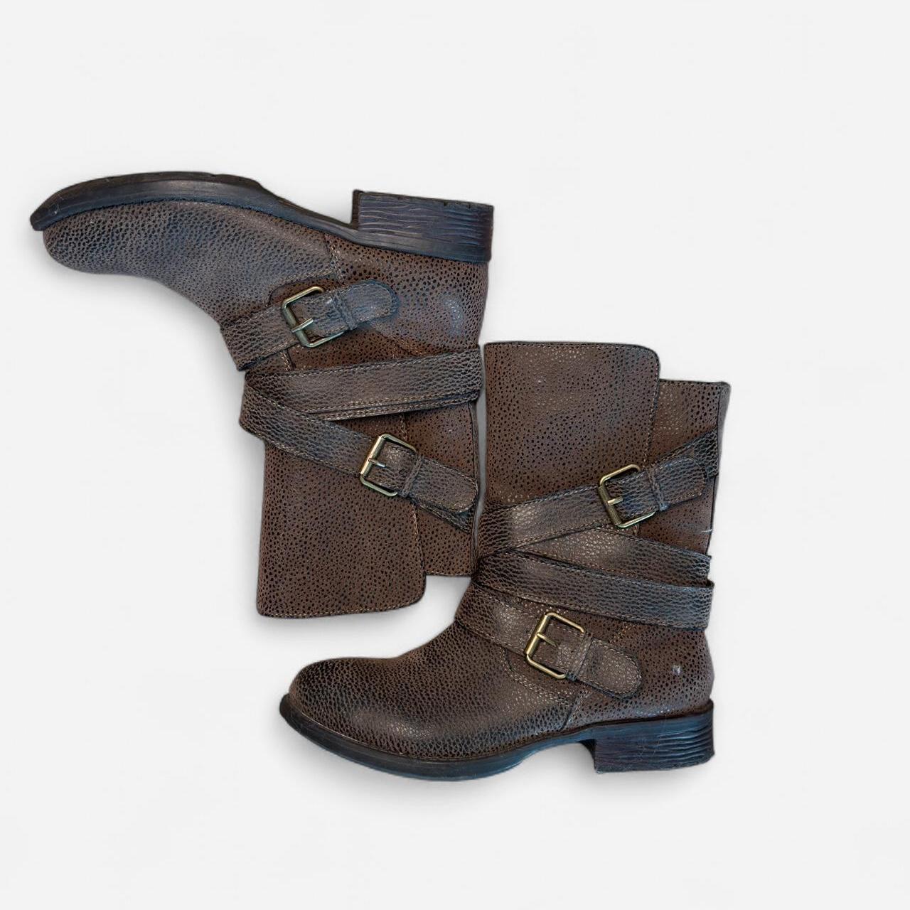 Vintage Brown Leather Harness Biker Boots