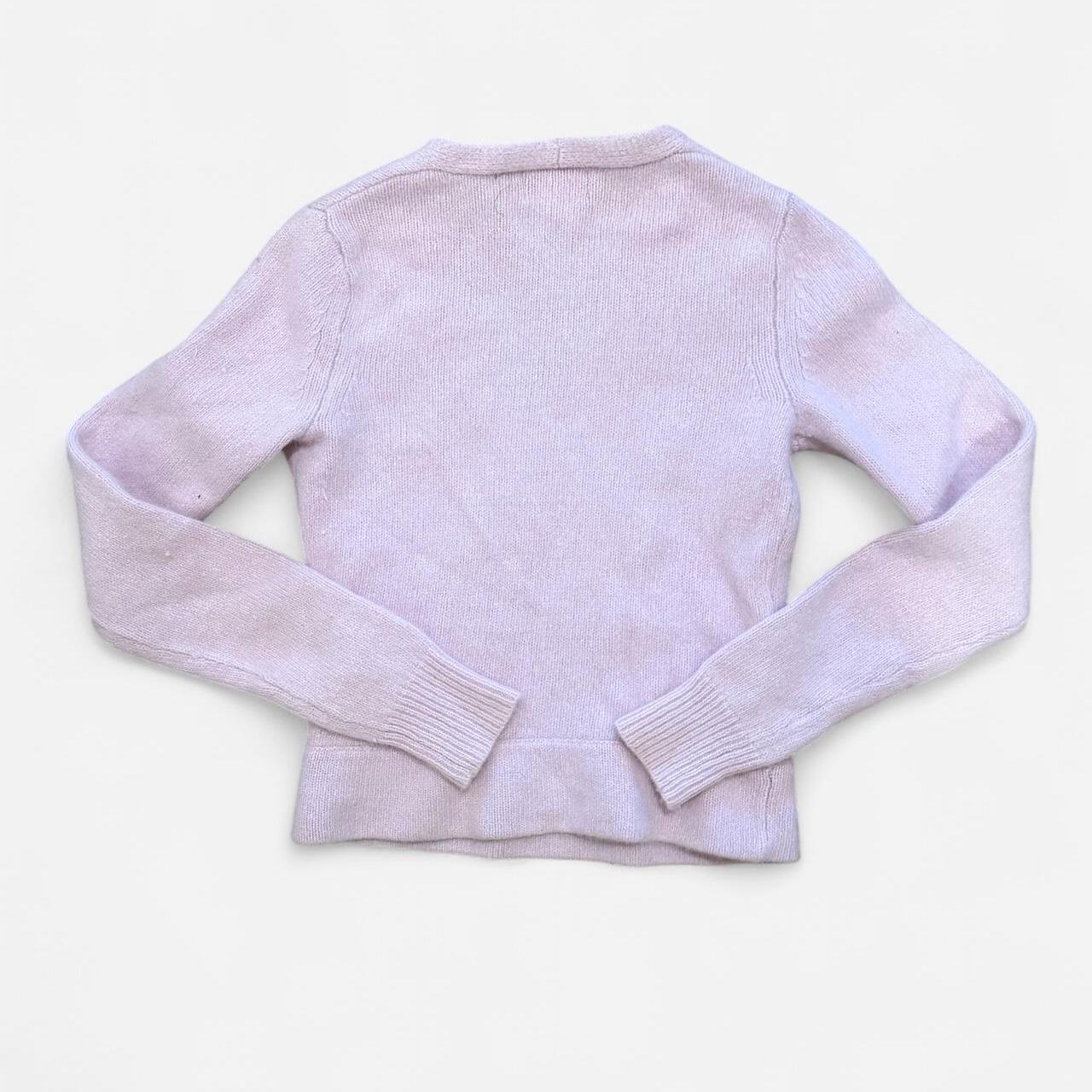 Soft and feminine wrap-style sweater from The Limited. Features a flattering V-neckline, side button detail, and cozy knit fabric in a pale purple shade. Perfect for layering or styling on its own.