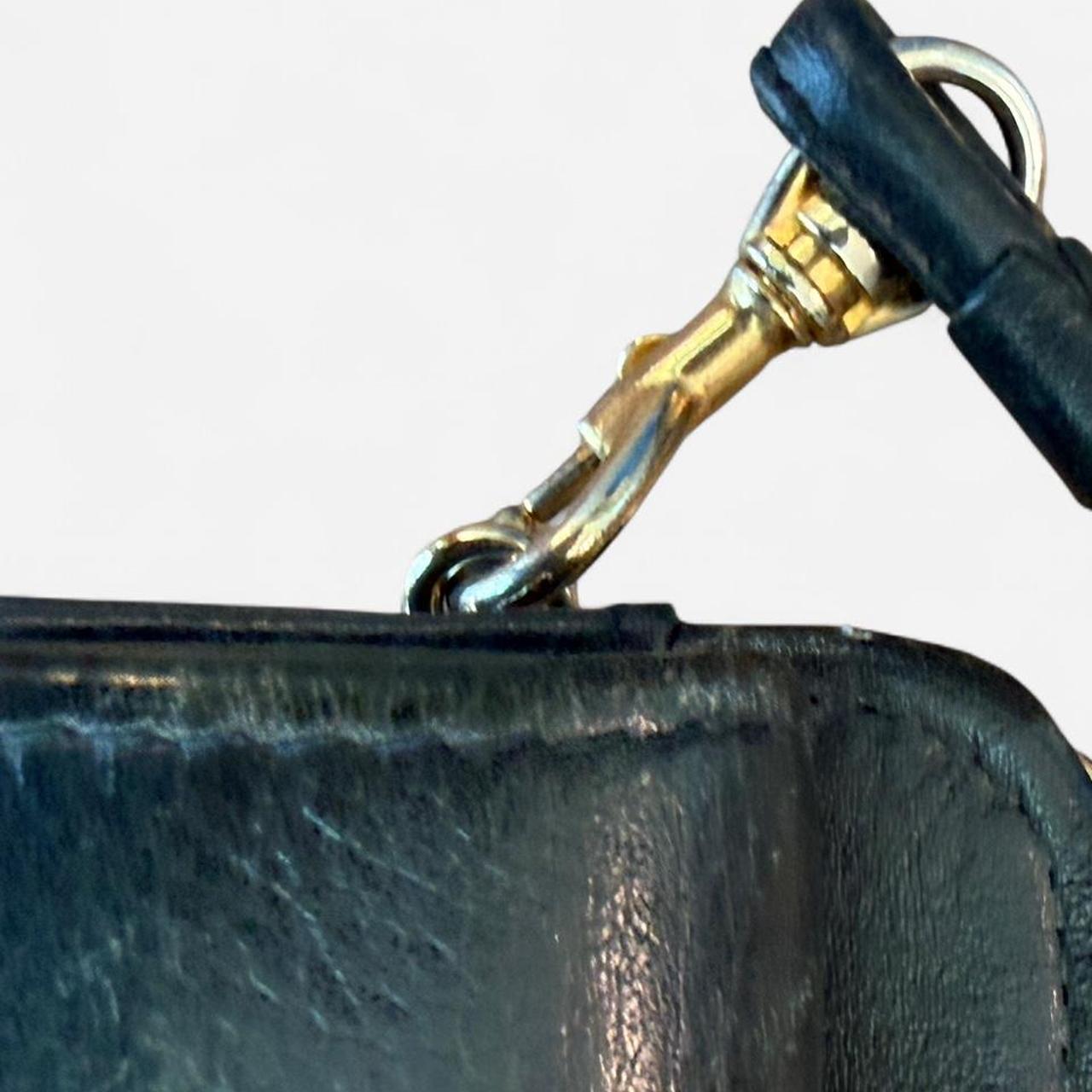 Chic vintage black leather shoulder bag featuring a structured rectangular design with gold-tone hardware. Includes a clasp-frame main compartment and zip pocket for essentials. The adjustable strap allows it to be worn on the shoulder or crossbody. Perfect minimalist accessory for everyday wear or night out.