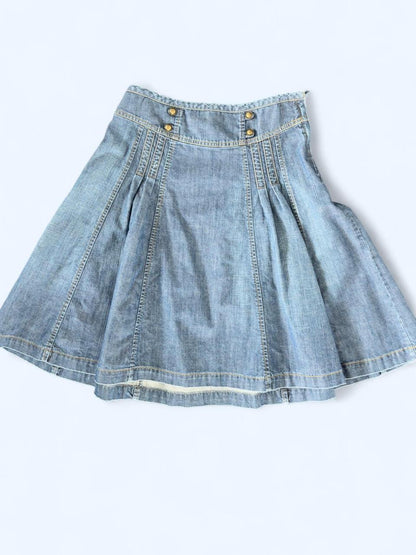 Super Cute Y2K-Style Pleated Denim Skirt with Gold Button Details